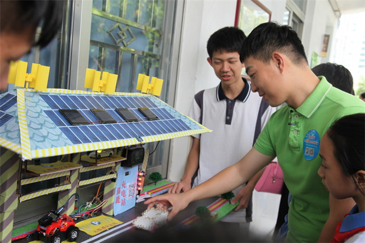 学生生全程加入了运动的开机仪式和开场节目录制及角逐,,,,在角逐历程中,,,,学校“唯车立异”、“海陆空无敌战士”、“智慧无忧”创客团队的项目作品吸引了中央电视台少儿频道主持人毛毛虫哥哥的眼球,,,,并亲自己体验感受和采访,,,,并获得了赞许。。。通过这样的运动让孩子们相识创客立异实践能力的意义以及将自己的作品举行共享的精神,,,,深刻熟悉创客文化。。。